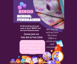 The BINGO School Fundraiser is scheduled for February 6th and 20th. Doors open at 5:30 PM, and games begin at 7:00 PM, at Potlatch House.