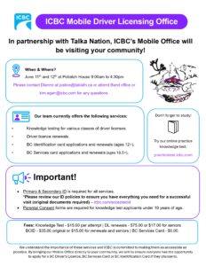 « All Events This event has passed. ICBC Mobile Office Takla Visit June 11 @ 9:00 am - 4:30 pm « Drop-in Clinic with Canada Revenue Agency & Service Canada Graduation Dinner » Related Add to calendar Google Calendar iCalendar Outlook 365 Outlook Live Details Date: June 11 Time: 9:00 am - 4:30 pm Venue Potlatch House